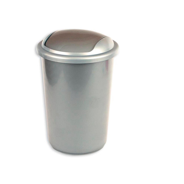 Характеристики: Контейнер д/мусора, 50л, Vileda Professional "Ирис", 137735, металлизир. пластик, без крышки, круглый, черный/металлик, 38х73см